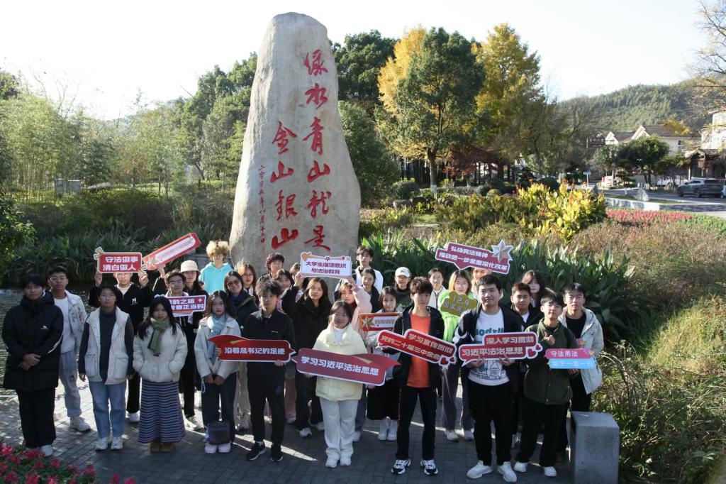 在安吉余村,同学们一起学习重温《宪法》中关于生态文明的相关内容。同时,还详细了解了余村的基层法治建设情况,以及村规民约制定、法治文化普及、民主法治实践等方面的创新举措和显著成效。