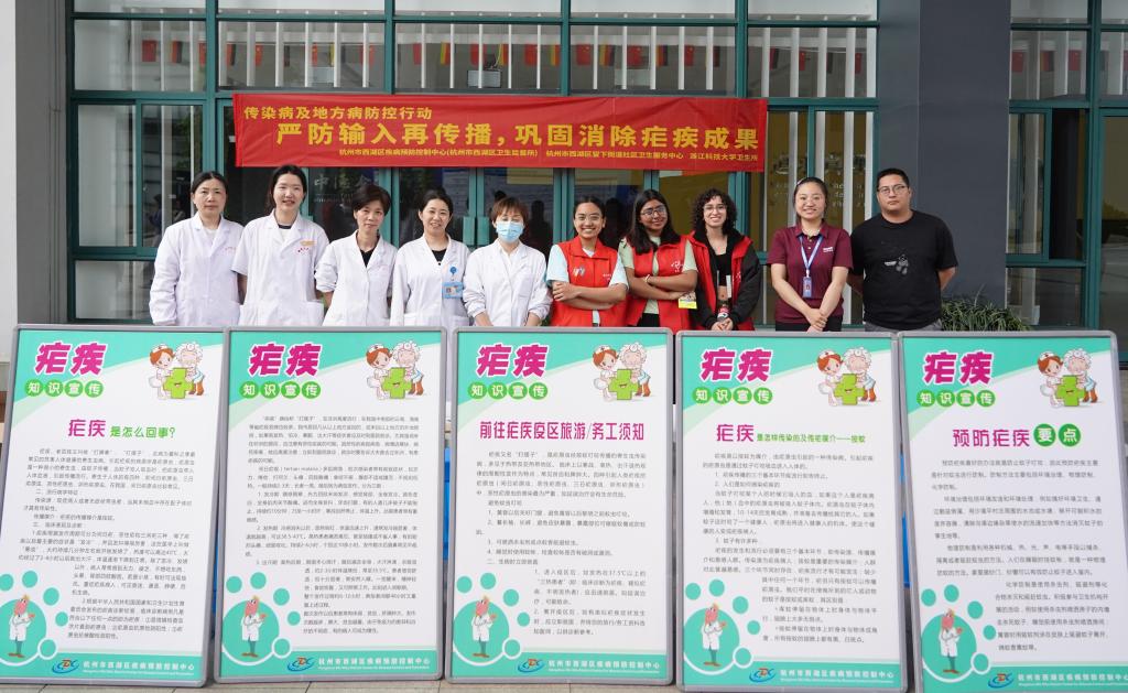 活动现场,西湖区疾病预防控制中心的工作人员与我校留学生志愿者采用中英双语交互式讲解模式,向现场师生普及疟疾媒介传播途径、典型临床表现及综合防控办法等方面知识。留下社区卫生服务中心的医护人员向师生发放防治手册,开展知识问答互动环节,现场参与师生达300余人次。